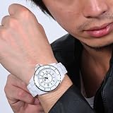 [ベルエア]Bel Air 腕時計 オールセラミック&カレンダー機能付きのセラミック腕時計 AC-W-BCG55xBKxF ホワイト メンズ/レディス/ユニセックス ![]() 新品の出品:7,820円 中古品の出品:円 コレクター商品の出品:円 カスタマーレビュー 重厚感と艶やかさで段違いのクオリティーを演出してれくれるセラミックを贅沢に使用したハイグレードモデル。 ムーブメントはカレンダー機能付きで、フェイスに使用したガラスも傷や衝撃に強い「サファイアガラス」を採用するなど、細部までこだわりの仕上げ。 まるで象牙が陶磁器…、美しく滑らかだけど、迫力のでかラウンド円形フェイス。オーソドックスなアラビア文字盤。 重さもかなりのもの。通常75g前後ですが、サファイアクリスタル&ホワイトセラミックの重さがどっしり! ゴツ重です。 ムーブメント:クォーツ(電池式) ムーブメント:日本製 ※組み立ては中国 文字 |