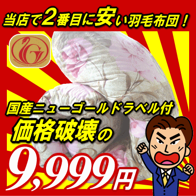 ★今ならポイント10倍★日本製【ニューゴールドラベル】ホワイトダウン90%が1.4kg!柄が選べる激安羽毛布団『シングル』あす楽対応・即納・68%OFF・布団・羽毛ふとん・国産【週末限定s0621】【 価格: 9,980円 レビュー評価:4.55 レビュー数:620 サイズシングルサイズ(150cm×210cm) 仕様生地:表/裏 柄物は綿100%(平織り) 無地ベージュはポリエステル80%・綿20%羽毛:ホワイトダックダウン90%・フェザー10%充填:1.4kgかさ高:120mm(ニューゴールドラベル付)キルト:立体キルト(4マス×5マス)その他:3年間の保証書付き 補修布(無地) カバーと結ぶ為のループ8ヶ所付き 日本製色ピンク系ブルー系無地ベージュ商品説明生地には綿100%の平織り生地を使用しています。表地には柄が入っていますが、裏地は無地になります。無地ベージュはポリエステル80%・綿20%になります。また、ホワイ Supported by 楽天ウェブサービス |